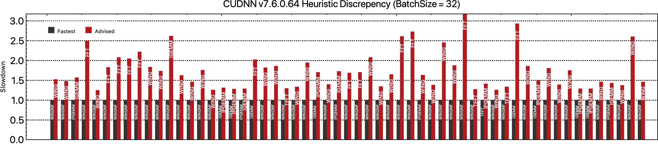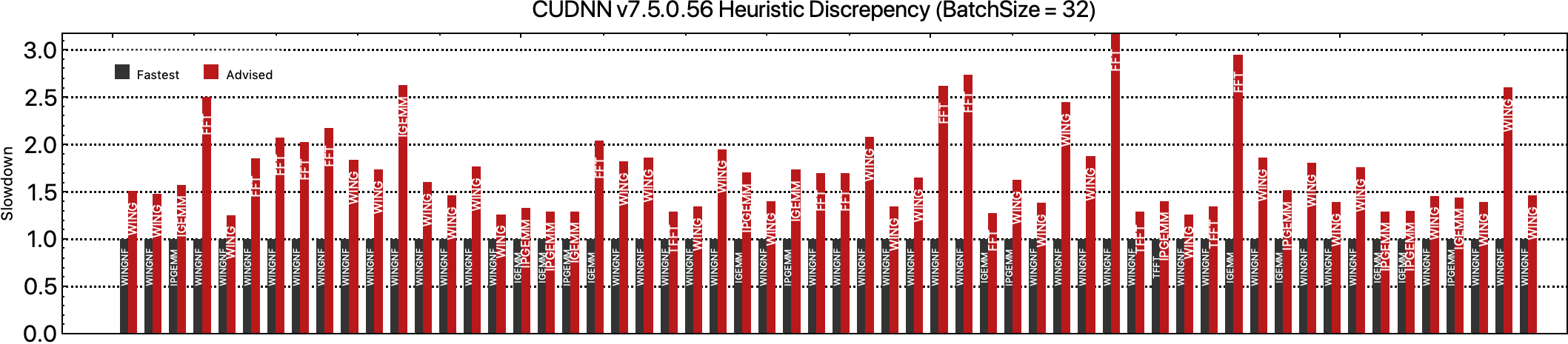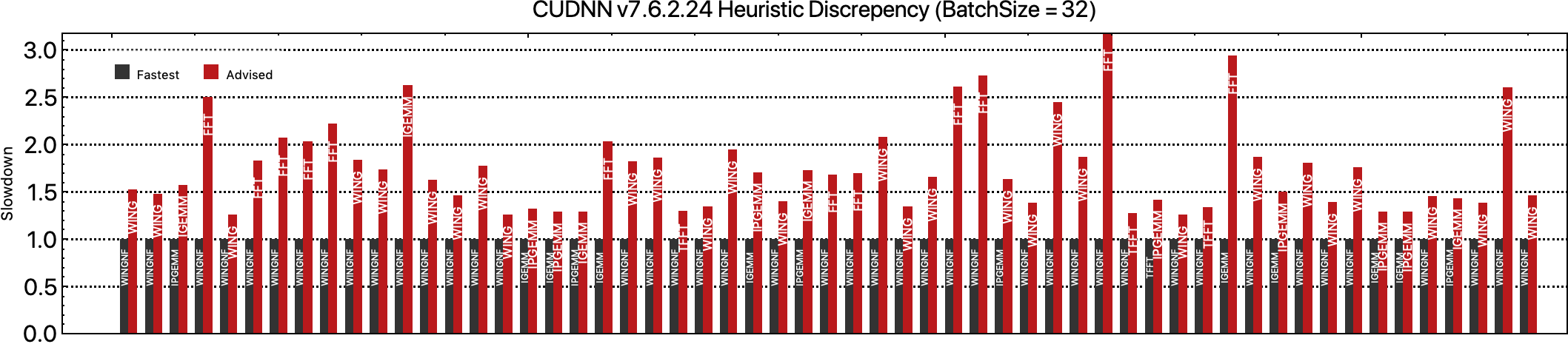 We find that the heuristics of CUDNN have not improved over the past few years…